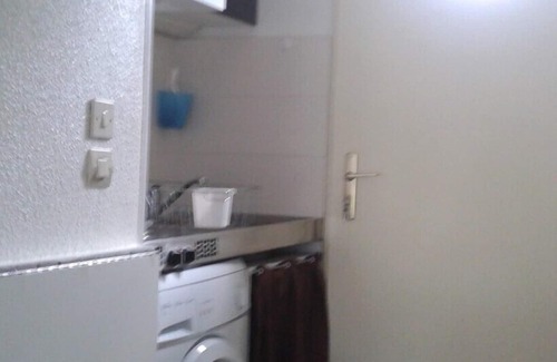 Equipped kitchenette: microwave, electric hob, fridge, washing machine, coffee maker, kettle, toaster.