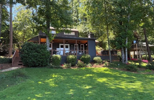 Escape to this nostalgic 4-bedroom cottage in Dadeville. With 2 king beds, 1 queen bed, 1 twin bed with trundle, and sleeper sofa this adorable retreat is perfect for families or friends looking for a cozy getaway (perfect for two families!!!). The cottage enjoys beautiful views, boat house/dock with diving board), tree House, outdoor shower, grilling areas (Traeger smoker, Green Egg, gas grill, Blackstone flat top, and hot dog roller). Great location close to grocery stores and restaurants both by land and water! Location, Location, Location!! Tree house has a futon, loft that could accommodate an air mattress (not provided). The treehouse provides a ceiling fan, portable air conditioner, and electric heater. (not completely insulated). Message for more info.