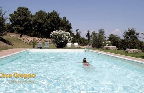 Greppo is a house in a beautiful location on a hill at 450 metres above sea level, near Rotecastello in Umbria, between Todi, Orvieto and Perugia. The house is surrounded by about 20 hectares of land with olive trees and offers a beautiful panoramic view.