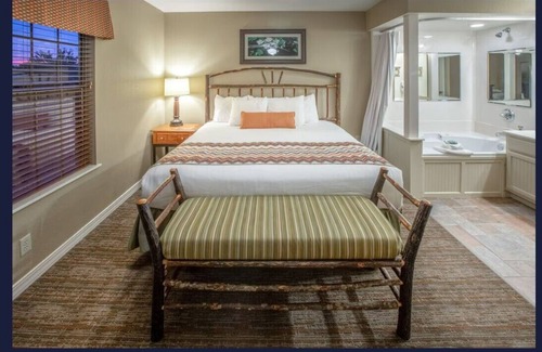 Your home away from home in Branson with 2 bedrooms. This beautiful resort offers a king bed and a queen bed, perfect for a phenomenal stay. Enjoy the jetted bathtub, shower, and additional living room with a full bed. Stay here at Holiday Inn Club Vacations Holiday Hills Resort Branson by IHG and take advantage of a golf course, a terrace, and a coffee shop/cafe. Tee up with amenities like a restaurant with golf course views at this hotel. For some rest and relaxation, visit the hot tub. The on-site restaurant, Grille on the Green, offers breakfast and lunch. Enjoy the gym, as well as activities like basketball, fishing, and volleyball.