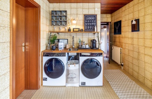 The special feature of this accommodation is the private outdoor area surrounded by nature. Enjoy the panoramic view of the Edersee National Park and relax in the spacious garden with covered terrace, balcony, barbecue facilities, and a fire pit for cosy evenings. The house is at your exclusive disposal.