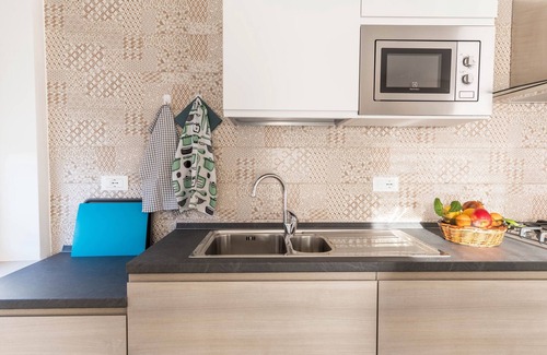 The 100 m² holiday home is spread across one floor and has its own entrance. It consists of a living room, a well-equipped kitchen with a dishwasher, 3 bedrooms (2 with a double bed and an additional single bed and one with 2 bunk beds) as well as 2 bathrooms and an additional toilet and can therefore accommodate 10 people. Additional amenities include Wi-Fi, air conditioning in all rooms, a 20 m² storage depot, satellite and television and a baby cot (on request). The private outdoor area boasts an open terrace with a table and seating furniture, where you can start the day with breakfast or spend the evenings with home-cooked dinners and a glass of wine while you look over the glistening lake and the surrounding mountains. From the home, you only need to cross the street in order to get to the marina, where you will find cafés, restaurants, shops and the tourist office. The nearest beach, where you can take refreshing swims in the lake, lies next to the marina, and along the lakeshore, there is a foot and cycle path connecting Torri del Benaco and Malcesine. The Acquafresca Sports Centre for all kinds of watersports is only a 6-minute walk (500 m) from the holiday home. The location is ideal if you would like to try sailing, trekking or mountain biking with your children. There are also several Nordic Walking routes of varying degrees of difficulty nearby. Malcesine is located 7 km or a 10-minute drive away, with the Scaliger Castle and a cable car, which takes you to the peaks of Monte Baldo, where you can also experience paragliding. 40 km or a 50-minute drive away, you can enjoy fun days at the famous Gardaland theme park, which is also reachable by bus (bus stop 50m away). In Castelletto (4 km or a 5-minute drive), you can visit the ethnographic museum and the Roman Villa, an exceptional archaeological discovery. Brenzone sul Garda is also home to numerous medieval churches worth a visit, including San Nicola in Assenza, San Zeno in Castelletto, adjacent to the Roman villa, Sant'Antonio Abate in Biaza and San Pietro in Vincoli a Campo.