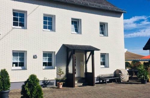 The Weins holiday home offers ideal accommodation for families, hikers, cyclists, motorcyclists or groups of up to 8 people. Whether it's a starting point for active tours or a place to relax, with us you will feel very comfortable in our 130 m² of living space. Up to 8 guests can enjoy the rural village scenery in 5 separate bedrooms. A kitchen with a seating area offers the opportunity for self-catering. In the directly connected winter garden you can enjoy the panoramic view over the Hunsrück heights. The separate living area with TV, stereo system and WiFi offers a place to retreat. The barbecue area located directly at the house is ideal for ending a beautiful day in comfort. 2 bathrooms with shower, toilet, towels,