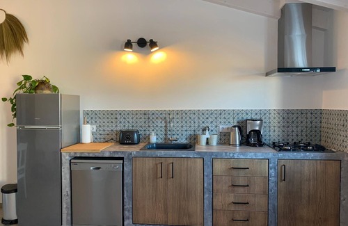 * Kitchenette with 4-burner hob, fridge/freezer, dishwasher, toaster and coffee machine