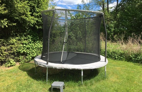 The outdoor area of our holiday homes offers a large terrace with garden furniture and barbecue, which invites you to relax and enjoy meals together. We have a variety of play equipment for children and teenagers: a play hut, a sandpit, a table tennis table, table football, a large trampoline and lots of other play equipment can be found on the large play and sunbathing lawn. The safety of your vehicles is ensured with car parking spaces directly in front of the complex. A lockable bicycle room is also available.