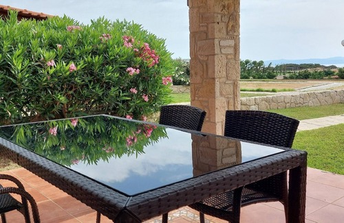 The family-friendly holiday home is located in a private holiday home complex with 21 houses on a small hill (approx. 50 m above the sea) on a cliff edge facing the sea (approx. 100 m away). It therefore has a beautiful view of the sea. The private complex and the beach below are mainly used by the owners.