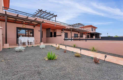 Villa Manuela, with step-free access, offers beautiful mountain views and is located in Lajares. The two-storey property consists of a living room with a sofa bed for one person, a fully equipped kitchen, one bedroom and one bathroom, so it can accommodate up to 3 people. Additional amenities include high-speed Wi-Fi (suitable for video calls), a smart TV with streaming services, a fan, and a washing machine. There is also a shared outdoor gym with active point equipment for your enjoyment. This accommodation does not have air conditioning. The villa features a private outdoor area including a garden, terrace, playground and outdoor shower.