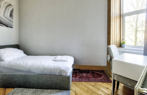 A quirky main door ground floor flat on the doorstep of Arthur Seat. This is a great and unique location enjoying the beauty of Holyrood park while being within walking distance to Edinburgh's famous streets and sites such as The Royal Mile, Edinburgh Castle, Grassmarket, Princes Street and much more. The beautiful wooden floors and corniced ceilings.