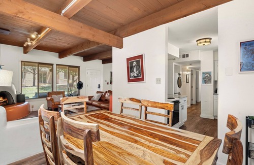 Discover the essence of Santa Fe living in this vibrant Fort Marcy Unit 33 condo. Infused with Southwest flair and a lively ambiance, this single-level, 2-bedroom retreat offers a true taste of local character. From its inviting living room with a cozy kiva fireplace to its fully equipped kitchen and dining area under a skylight, every corner exudes warmth and comfort. Whether you're snuggled up indoors for a snowy day with the provided entertainment or exploring the nearby historic plaza and attractions, you'll find yourself surrounded by the heartwarming familiarity of home.