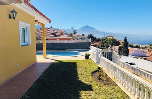 Beautiful villa in Tacoronte, with beautiful views of the Teide and the sea, large open spaces, swimming pool, garden, barbecue area, games room with billiards, table football, table tennis and much more. It has 3 bedrooms, each with its own bathroom, capacity for 6 people, fibre internet, heating and a privileged location to get to know the rest of the island. A unique house where every detail has been taken care of to make your holiday a magical experience.