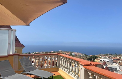 This spacious apartment with a sunny 20m2 terrace is a corner designed to disconnect while enjoying views of the Atlantic Ocean and the northern coast of Tenerife. The upper-floor terrace is equipped with a seating area, sun loungers and parasols, ideal for outdoor breakfasts, sunbathing, or simply relaxing at the end of the day.
