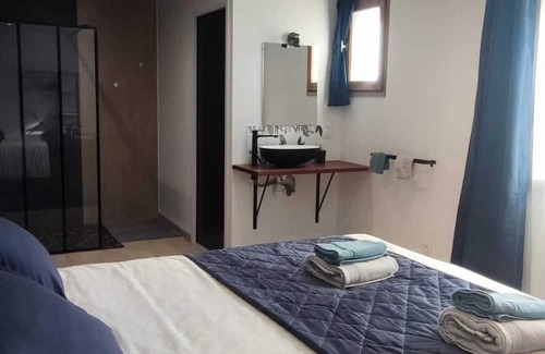 The house has 4 comfortable bedrooms, 1 including a double bed and a private bathroom with a shower, 1 including a double bed and a private bathroom with a bath tub, 1 including a double bed and 1 including 2 single beds and a bunk bed. The bathroom is fitted with a shower. A separate toilet is available