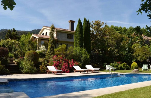 This villa, located in Pontevedra, is ideal for 15 vacationers. It offers 7 bedrooms, a private pool open all year, an enclosed garden and WiFi.