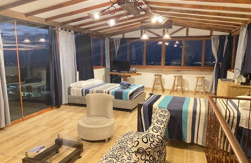 Hermoso Hospedaje el Mirador con vistas en vidrios panoramicos de 360 grados. A solo 2 cuadras del parque principal esta muy bien ubicado. Es muy comodo con colchones ortopedicos, cafetera, wifi, agua caliente y privacidad completa.
