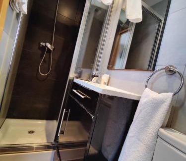Featuring city views, Hostal Manel in Pineda de Mar features accommodations and a bar. With a terrace, the 2-star guest house has air-conditioned rooms with free Wifi, each with a private bathroom. Private parking can be arranged at an extra charge. At the guest house, all units include a wardrobe and a flat-screen TV. Guests can have wine or champagne and chocolates or cookies delivered to their room. At the guest house, every unit comes with bed linen and towels. Platja dels Pescadors is a 5-minute walk from the guest house, while Water World is 10 miles from the property. Girona-Costa Brava Airport is 24 miles away.