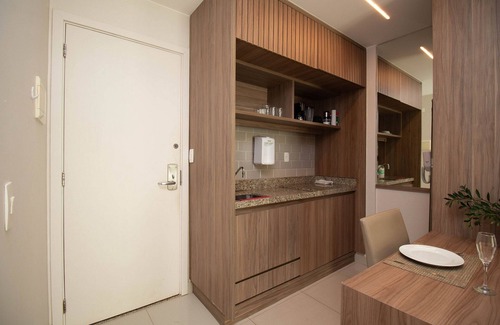 Super comfortable and well-equipped apartment with bedroom, living room, workspace with computer/laptop support, kitchen, bathroom and balcony. The condominium has access to Lake Paranoá, gym, swimming pool.