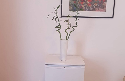 A living room and air conditioning are featured at this 1-bedroom, 1-bathroom rental. Bathroom amenities include a hair dryer, a bidet, and towels. Prepare a home-cooked meal in the kitchenette, complete with a stovetop and a refrigerator, as well as an electric kettle, a microwave, and cookware. Other amenities include bed sheets and a dining table.