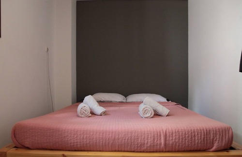 The house is a 90 sq.m two floor maisonette (1st and 2nd floor) that communicate via an inner staircase. On the first floor there are two bedrooms and the larger bathroom. On the second floor there is an undivided kitchen and living-room, and also the balcony. It can accommodate up to 7 persons, four in 2 double beds, two in a couche which turns into a semi-double bed and one person on the sofa.