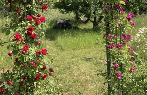 Cottage on the vineyard with a large garden and fantastic views Our high quality and stylish holiday home is located in the wine village Wiltingen. From the living room and the balcony offers a beautiful view of the mountain Altenberg. In the large garden you can relax wonderfully - in the hammock between apple trees, while grilling or on top of our own mountain with a glass of Riesling. Just behind the garden gate grow the first grapevines. At about 70 square meters our quiet cottage for 2 to 4 people offers a bedroom with box spring bed (brand Jette Joop), a large living room with panoramic views and TV, a large balcony, a bathroom with shower and toilet, a guest toilet and a modern, well equipped kitchen with oven and dishwasher.