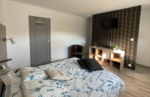 -A master bedroom with 1 bed 160, shower, sink and 1 TV