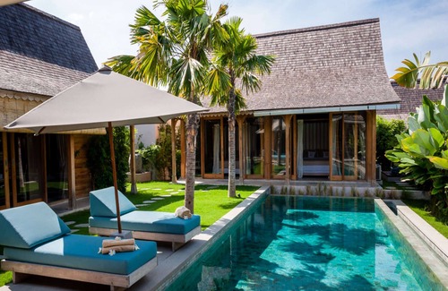 Tucked away in the amidst the rice paddies of Kerobokan, Bali Villa 2023 is a private villa accommodating 6 guests. 3 separate pavilions express the same Joglo-themed, thatched roofs - creating a homey conventional feel to this island retreat. The setting allows families traveling with kids and friends to seclusion and privacy. Floor-to-ceiling glass-sliding doors invites guests to nourish their poolside suites overseeing the glistening waters.