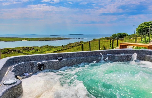 Ireland's most spectacular view at ultra-luxury glass villa with deluxe hot tub is located in Roundstone. Ireland's most spectacular view at ultra-luxury glass villa with deluxe hot tub provides accommodation, featuring Balcony/Terrace, Bedding/Linens, Entertainment, among other amenities. This Villa features Balcony/Terrace, Bedding/Linens, Entertainment, to make your stay a comfortable one.