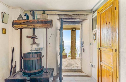 The house is equipped with an incredible terrace with sea view and it on three levels: once you are in you will find the bathroom and the entrance corridor, on the second floor the living area with kitchen, dining table and sleeping area with double bed, in a mezzanine the two bunk beds. THE HOUSE IS ONLY SUITABLE FOR WALKER AND NATURE LOVERS