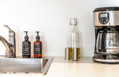 Welcome to our soulful studio retreat in Stratford's vibrant downtown. Framed by warm walnut tones & bold Canadian artwork, this designer space offers an inspiring blend of calm & creativity. Relax in a plush queen bed, unwind with a book in the sculptural lounge nook, or sip morning coffee beside the sunlit café table overlooking historic streets.