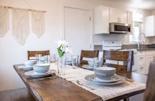 The living room is a cozy space for relaxation, entertainment, and family bonding. Kick back and watch your favorite shows or movies on the flat-screen TV.