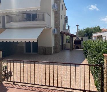 Kalives Sithonia Family house is located in Kalives Poligirou, just a 3-minute walk from Kalives Beach and 19 miles from Anthropological Museum & Cave of Petralona. This property offers access to a balcony, free private parking, and free Wifi. Featuring a terrace and mountain views, the spacious vacation home includes 4 bedrooms, a living room, flat-screen TV, an equipped kitchen, and 3 bathrooms with a shower. Guests can enjoy a meal on an outdoor dining area while overlooking the garden views. For added privacy, the accommodation has a private entrance and soundproofing. Guests can make the most of the warm weather with the property's barbecue facilities. Thessaloniki Airport is 38 miles from the property.