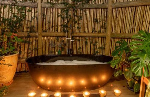 Featuring garden views, Kamala Karoo Sanctuary in Barrydale features accommodations and a shared lounge. This property offers access to a terrace and free private parking. The guest house has an outdoor fireplace and a sauna. At the guest house, every unit comes with a outdoor furniture. Every room comes with a private bathroom with bathrobes, while certain rooms are fitted with a fully equipped kitchen with a dishwasher. At the guest house, some units are allergy-free. Buffet and continental breakfast options with fruit, juice, and cheese are available. There is an on-site coffee shop, and during warmer months you can make use of the barbecue facilities. Guests can make the most of the garden, outdoor swimming pool, and yoga classes offered at the guest house. Guests at Kamala Karoo Sanctuary will be able to enjoy activities in and around Barrydale, like cycling and hiking. Grootvadersbosch Nature Reserve is 22 miles from the accommodation, while Drostdy Museum is 28 miles from the property.