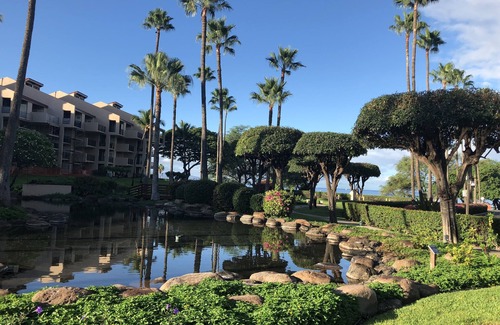 This upscale property is located in beautiful, sunny South Kihei directly across from the Kamaole III beach. The complex is set on 15 acres of lush tropical gardens including fountains and a waterfall. Enjoy Hawaiian birds and the scent of tropical flowers while you relax on your lanai. This property is superb for couples who want to enjoy on-site services and prefer being within walking distance of nearby beaches, restaurants, shopping and nightlife.