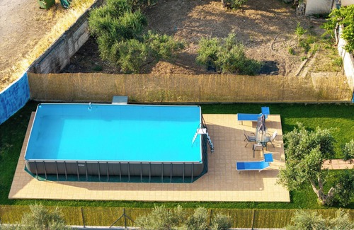 No, this Kamares house does not have a swimming pool. Check the Facility Overview section for details about the pool and other available facilities.