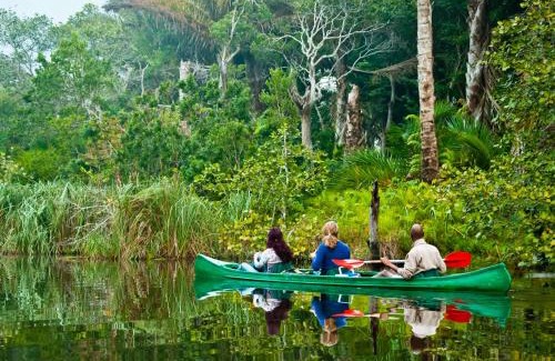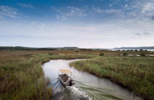 Kosi Forest Lodge is privately tucked into the tranquil sand forest alongside the Kosi lake system, located in the Isimangaliso World Heritage Park. It offers well-appointed rooms in a natural surrounding. The thatched rooms are raised on a wooden deck and offer roll-up canvas blinds. Each room features a unique outdoor and reed-enclosed bathroom. The dining area is located at the main lodge, opening up onto a spacious wooden deck. There is also a bar and a shared lounge. Guests in Kosi Forest Lodge can enjoy their privacy, relax by the pool or choose from a range of activities, including guided canoeing, raffia forest walks and day boat trips across the lakes. King Shaka International Airport is 240 mi away, while the border to Mozambique is 15 mi from the property.