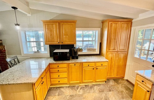 This cozy 1,400 sq ft. lakefront 3/2 cottage has been fully renovated. Enjoy the beautiful air conditioned sun room with stunning views while you sip your morning gourmet coffee provided by owners. By day entertain your family and friends on the large dock with swimming, kayaking, or using the SUP (owner provided kayaks and SUP). The spacious deck provides a great spot to cook meals on the gas grill and wind down in front of the custom made fire pit while cooking s'mores and making memories.
