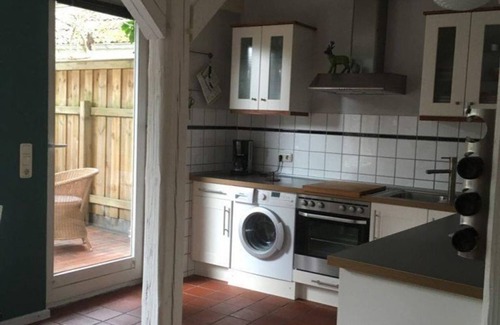 The open plan living room has a cozy sitting area, a dining area and a new, modern kitchen. Upstairs is the bathroom with bath and the bedroom with access to a balcony (10sqm) to the south. From our quiet, yet centrally located cottage, they have all the possibilities. The historic harbor is 200 meters away. In addition, our small cozy city center within 3 minutes to reach. There you will find both bakeries, an ice cream parlor, the tourist information with the Tönninger library. You can also find doctors and a pharmacy in the city center. Just around the corner there is also the castle park which invites for walks and various events such as our traditional ring-riding and other nice festivities. Within 10 minutes you can reach our green swimming beach where you can find the seawater swimming pool. The Multimar Wattforum in Tönning offers a scientific background and has all the information you can learn about our Wadden Sea. Gastronomically Tönning has a lot to offer for you about fish restaurants, an Italian, the vineyard and the biorestaurant Miiriamar you everything is offered. At the nearby ferry terminal you can take interesting ferry trips directly from Tönning, such as: B. a drive to the seal banks, a ride through the Eider barrage or a fishing trip led by the National Park Office within 20 min. By car you can reach both St. Peter-Ording with its endless sandy beach as well as the Theodor-Storm-city Husum and Heide and Büsum can be reached at this time. In addition, the former Dutch town of Friedrichstadt is 10 km away and invites you to a canal ride on Eider and Treene.