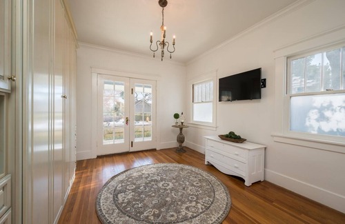 Uncover the enchantment of La Belle Vie on Vine, a hidden oasis located just moments away from downtown Paso Robles. Step inside this meticulously restored Colonial Revival home and immerse yourself in the heart of wine country. This delightful residence seamlessly blends the grace of the past with the comforts of today, offering a unique fusion of old-world allure and contemporary luxury. Take pleasure in the serenity of the private courtyard and a covered porch, perfect for enjoying al fresco dining and unwinding after a long day.