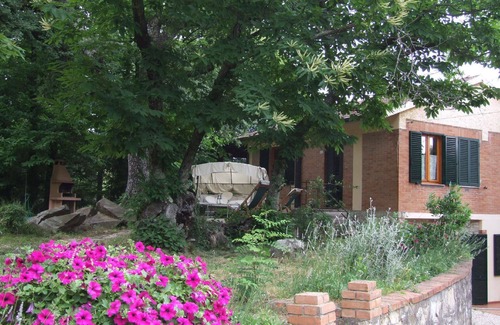 The holiday house with a garden of 2000 square metres is surrounded by a chestnut forest and is only 800 metres from the village, and consists of three holiday flats.