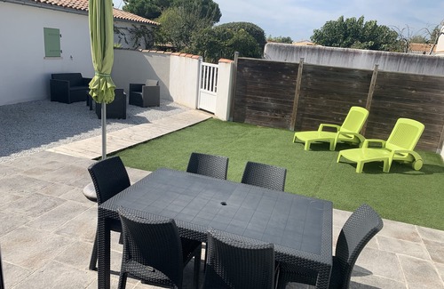 300m from the seafront, 300m from the village center and medieval market, in a quiet area, pretty house réhaise (120m2) independent walled. living room, kitchen all comfort with dining area.
