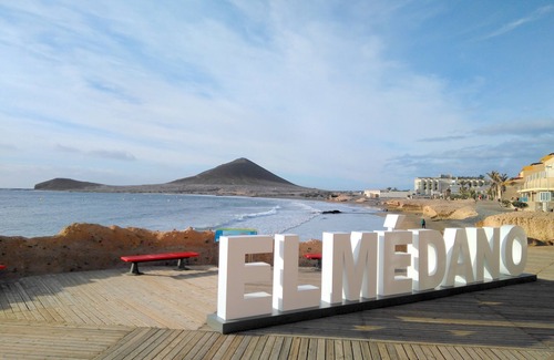 Beautiful and spacious Bungalow / Duplex, 3 minutes walk from the beach, about 300 m from the center of the village of El Médano in the South of Tenerife. Direct access to the Avenue and the sea, Beachfront Jaquita and surrounded by a protected natural environment.