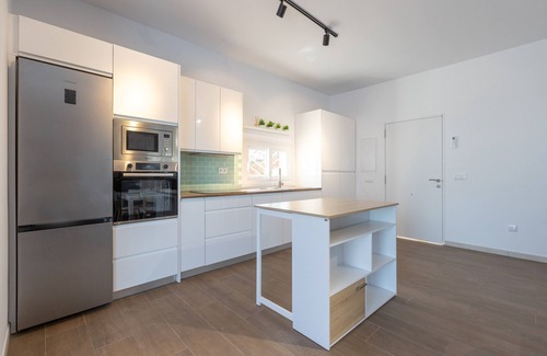 Inside the single-story house, you will find a spacious open area connecting the living room, dining room, and kitchen. It is equipped with air conditioning and a Smart TV, and the ceramic hob kitchen has all the necessary utensils for comfortable cooking. At bedtime, you can choose from three bedrooms. The first bedroom has two beds, one double and one single, with an en-suite bathroom with a shower. The second bedroom has two single beds, and the third has a bunk bed with a double bed below and a single bed above. A bathroom with a shower completes the accommodation. The house is equipped with a washing machine, dryer, iron, and ironing board. If you are traveling with a baby, we can provide a crib and a high chair.