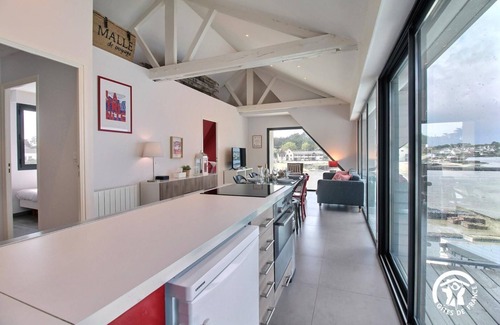 This apartment overlooking the Crac'h river (Bay of Quéhan) is located on the first level of a holiday home divided into two gites, ten steps allow you to access the accommodation. The main room consists of an equipped kitchen open to a fully glazed living room/living room (Netflix access TV). Immediate access to a beautiful suspended terrace with sea view and equipped with garden furniture. Two bedrooms with small sea view (1 double bed 140X200 and 2 single beds 90X200). Bathroom with shower and sink, separate toilet. Walk along the owner's oyster building to access La Villa Jeanne, you can park in the shop car park. Gîte located above gîte 56G2339. Many advantages for this idyllic vacation spot for couples or families, ideally located a stone's throw from La Trinité sur Mer. At the heart of an oyster farm, this vacation rental, with elegant decoration, overlooks the oyster ponds and offers a spectacular view of the bay of Quéhan in southern Brittany, to the rhythm of the tides. On the site, a direct sale shop of ultra-fresh shellfish and crustaceans open 7/7, as well as a tasting area where you can savor the owners' oysters, feet in the water. Proximity to beaches and seaside activities, fishing on site, hiking trails, tennis club less than 100 m away (clay court), leisure park 7 km away...