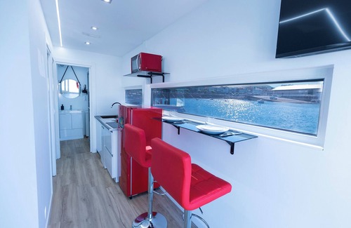 Relax in the garden (enjoy the outdoor furniture!) or sip a drink in the spa tub of this houseboat. As for the great indoors, you can come inside and enjoy the WiFi and Smart TV.