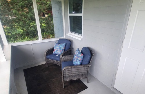 Nestled in a historic fishing community with boat ramp on Lake Griffin in Leesburg, this delightful home offers a retreat for guests with lake views of Lake Griffin from the porch and modern amenities. Kick back and relax in this calm, stylish space watching the sun rise at the boat ramp with views of Lake Griffin. Unwind on the screened porch or in the cozy living room with electric fireplace, smart TV and wifi. Enjoy coffee and meals in the fully stocked kitchen. Enjoy a good night's sleep on the memory foam queen mattress in the bedroom or queen sleeper sofa in the living room. Boat launch and waterfront sunrise views in the community located at the boat ramp. Carpet free home offers clean living space.