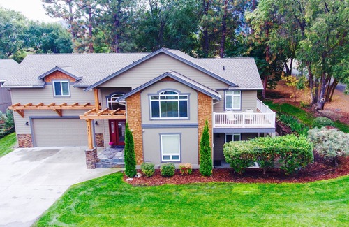The Pines is a large, comfortable home that is newly remodeled and features 6 bathrooms and 5 bedrooms, four with master beds and a private bath in each room so no one has to fight about who gets the best room . There is a 12 person limit for cleaning-call for exceptions. Three rooms also have a private outdoor sitting area. There is a bonus bunk/game room (sleeps 6) that provides a wonderful space ( includes a comfy double bed) for guests to spread out and play foosball or watch a movie. We are very well stocked in the kitchen including a Keurig. The Pines also has a hot tub, cleaned every Thursday, and private patio with lots of seating surrounded by pristine trees and a view from the deck of Lake Chelan. The yard is huge for fun activities and a barbecue for a cook outdoors. Out the back door, a recreational trail leads you to one of the resort pools and you are only 100 steps to the beach. Wapato Point has pickleball and tennis courts, boat rentals, a mini golf course, several outdoor pools, an indoor pool, a fishing pond, playground, two large beaches, and is next to a wineries and several restaurants. Of course, exclusive high speed is available. Summer rentals are one week only Friday to Friday.