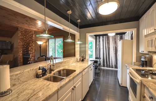 The home includes appliances, linens, furniture, electronics, and fully stocked kitchen. Other amenities include gas fireplace, gas grill, and a washer/dryer. The home includes 3 queens, and a trundle- with full bottom and twin on top, and 1 pull out queen sleeper plus loft with day bed and trundle. A pack and play and high chair are available upon request before arrival.