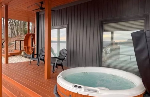 Gorgeous gated lakefront property with a gym, hot tub, game room and private dock. Enjoy this Retreat in luxury with friends and family while having fun making memories at the lake. Nestled among the trees this secluded property has tons of outdoor living space with multi-level decking and an outdoor dining and grilling area. Discover the charm of this hidden lakefront gem, there's something for everyone!