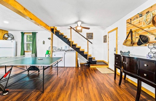 Escape to Lake Livingston! This 2BR/1.5 Bath cabin offers 2 queen bedrooms plus a separate game room/converted garage with ping pong and hangout space. Upstairs loft includes 4 twin beds, making it perfect for kids or groups. Sleeps 8 total. Enjoy direct lake access with a neighborhood boat launch, outdoor dining and grilling, and evenings around the firepit. Ideal for families, fishing trips, and lakeside getaways.