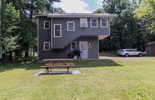 The Lake Loft features a king-size bed and a queen sleeper sofa to comfortably accommodating your group. Unwind after a day of adventure in the spacious full bathroom, which includes a shower and tub combo, as well as a half bathroom located in the entryway of the apartment. Enjoy the convenience of on-site laundry facilities located in the entry, ensuring a stress-free stay. Eat in at the fully stocked kitchen, or step outside and grill out on your own private grill and picnic table. Wander down to the docks and enjoy the lake up close. Dip your toes in the cool water, or try out one of the shared paddleboards or kayak. In the evenings, gather around the fire pit to share stories, roast marshmallows, and stargaze under the clear Minnesota sky. Our Lake Loft at Grand Lake offers easy access to the surrounding natural beauty and recreational opportunities just 15 minutes north of Duluth. You can also launch your own boat on the nearby boat launch on Lake Rd.