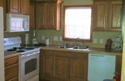 and two full baths. There is a fully equipped kitchen, washer and dryer, three